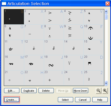 “Select…” 로 이미 만들어진 기호를 선택하거나 “Create…” 로 새로운 기호를 만듭니다.